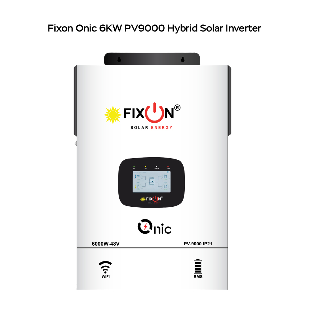 The Fixon Onic Series 6KW PV9000 48V Hybrid Solar Inverter is a high-performance energy solution designed for modern homes and businesses. With support for up to 9000W solar input, 48V battery system, and pure sine wave output, it ensures efficient and reliable power management.