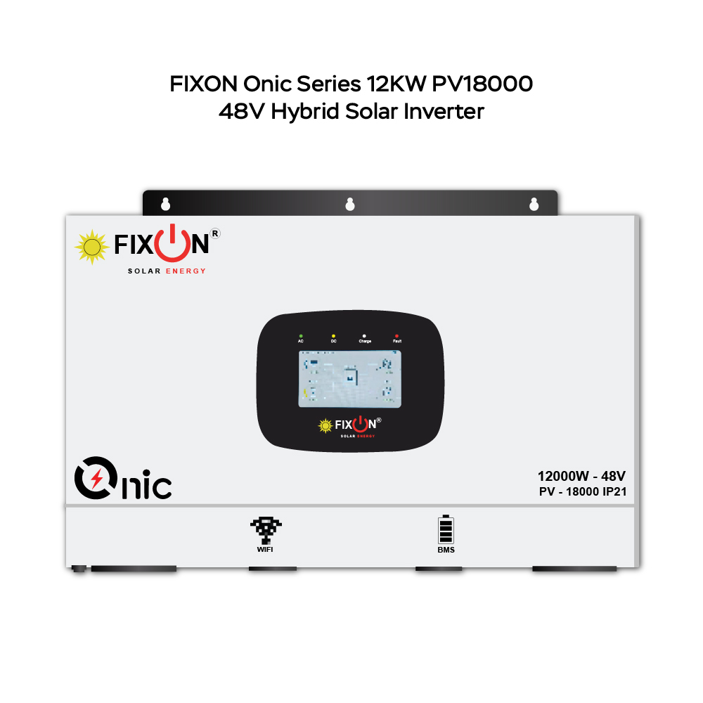 The Fixon Onic Series 12KW Hybrid Solar Inverter is a powerful and advanced energy solution designed for large residential and commercial solar systems.