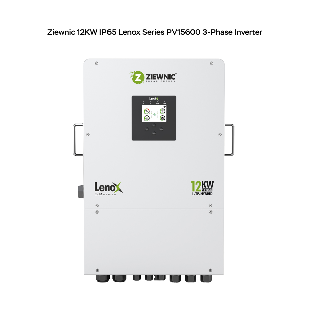- High Efficiency up to 99%Buy Ziewnic 12KW IP65 Lenox Series PV15600 Hybrid Solar Inverter with dual MPPT, 48V battery support, and waterproof design. Ideal for commercial and large solar systems.