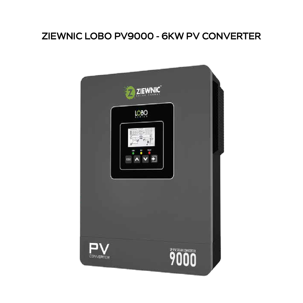The Ziewnic Lobo PV9000 PV Converter is a 6KW Off Grid solar inverter from the Lobo Series, designed for high-efficiency solar power generation without batteries.